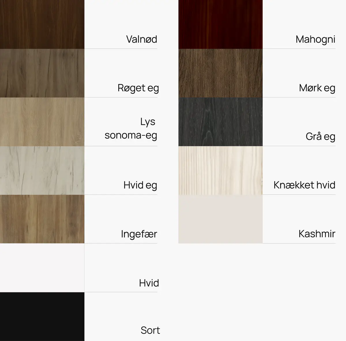 Vi står klar til at hjælpe med at designe en kombination, der passer til dine behov. Opbevaring er enkel og kræver kun en fugtig klud til rengøring.